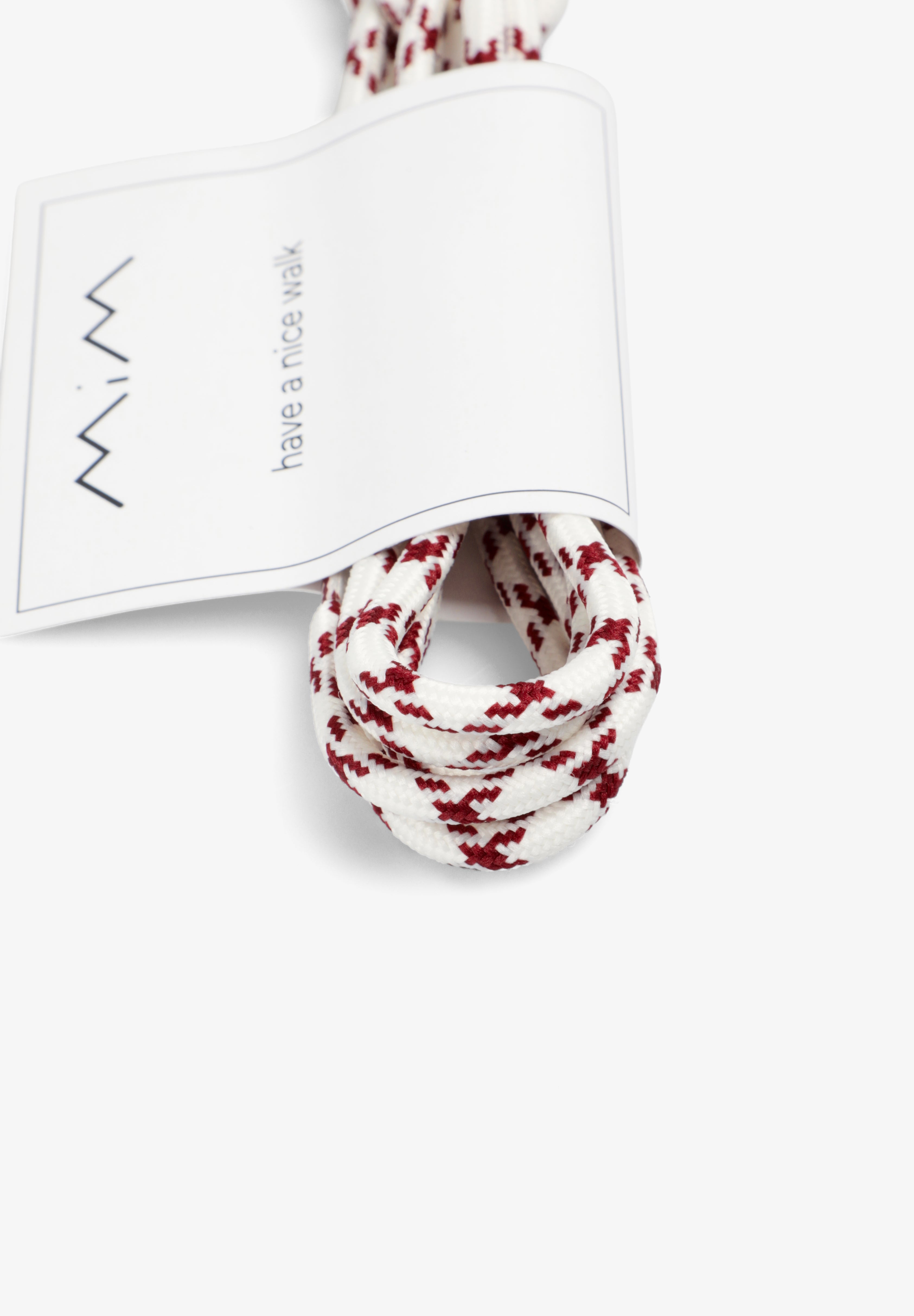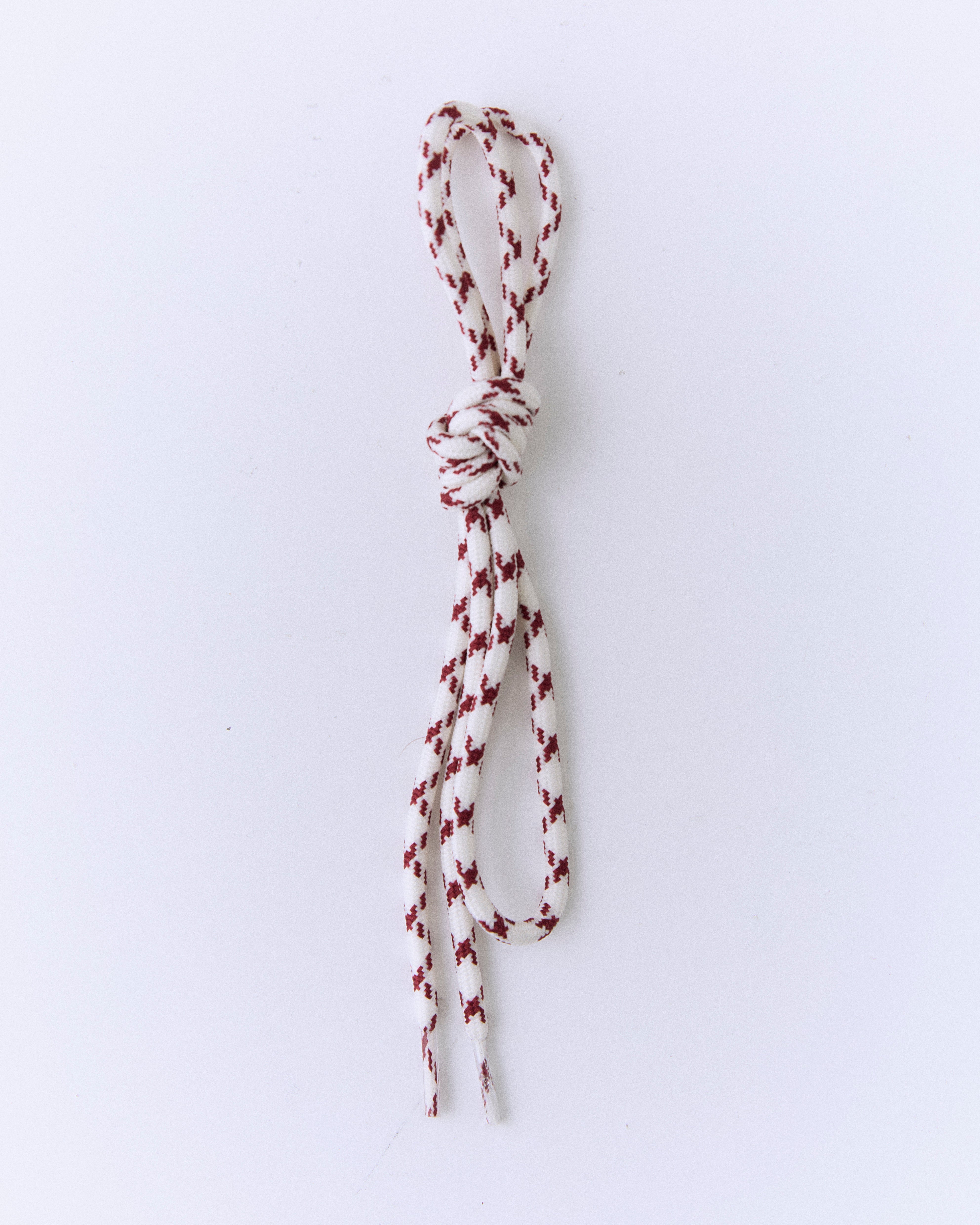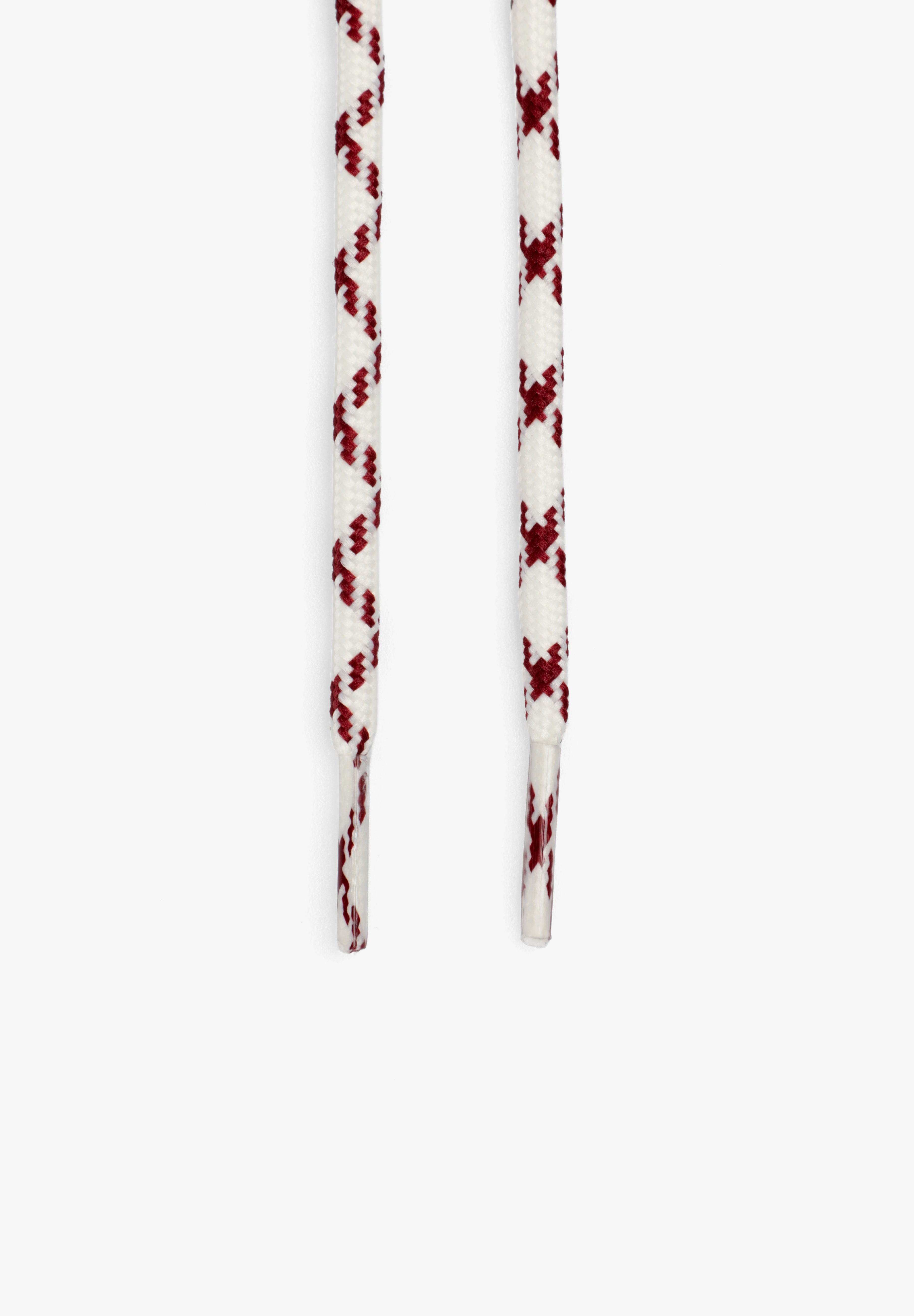 Round white laces with burgundy details.