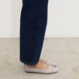 Ballet flat shoe in mesh fabric. Elastic strap on the instep. Sky blue color.