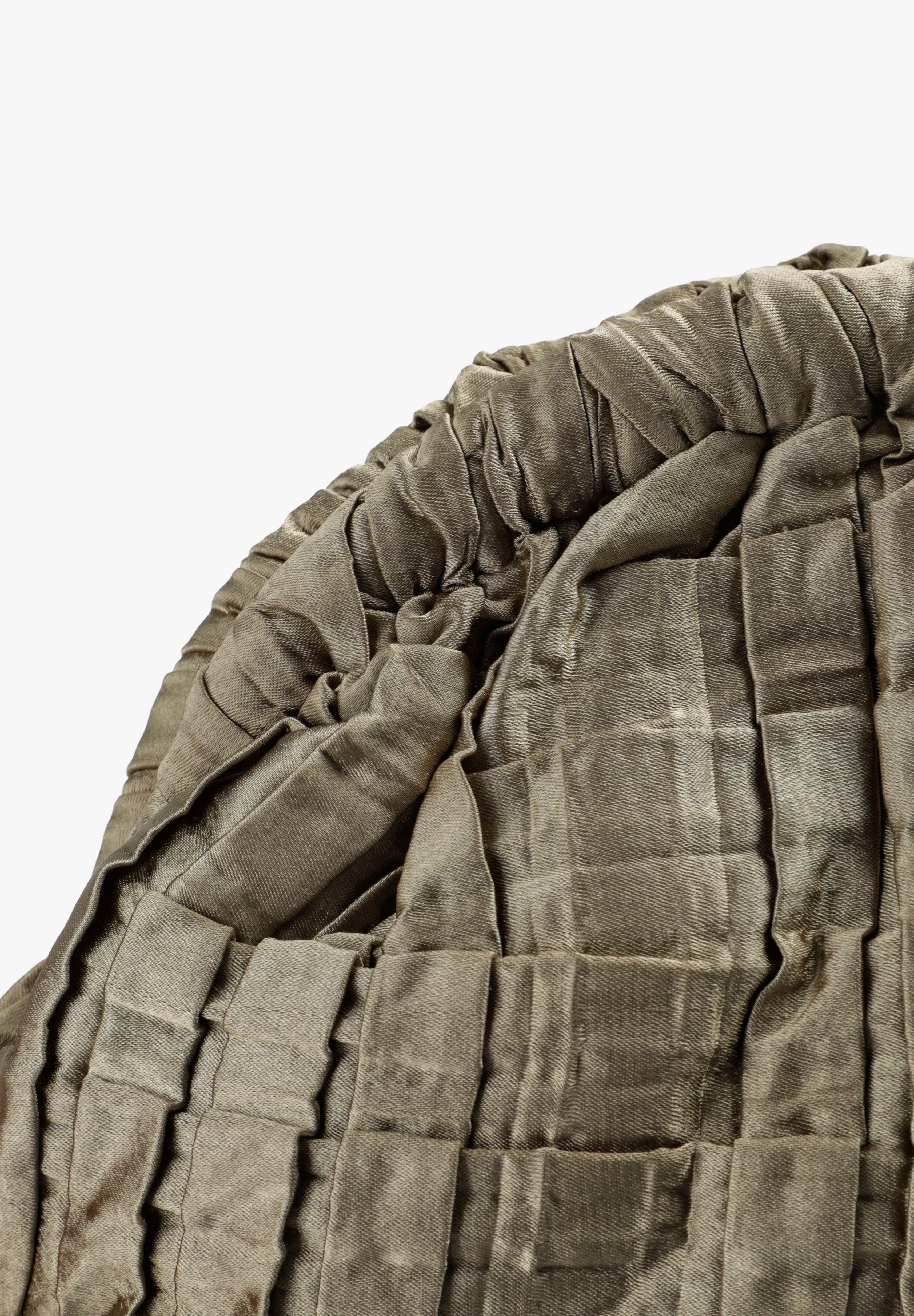 Bolso de mano estilo clutch de tela satinada y texturizada en color metalizado.