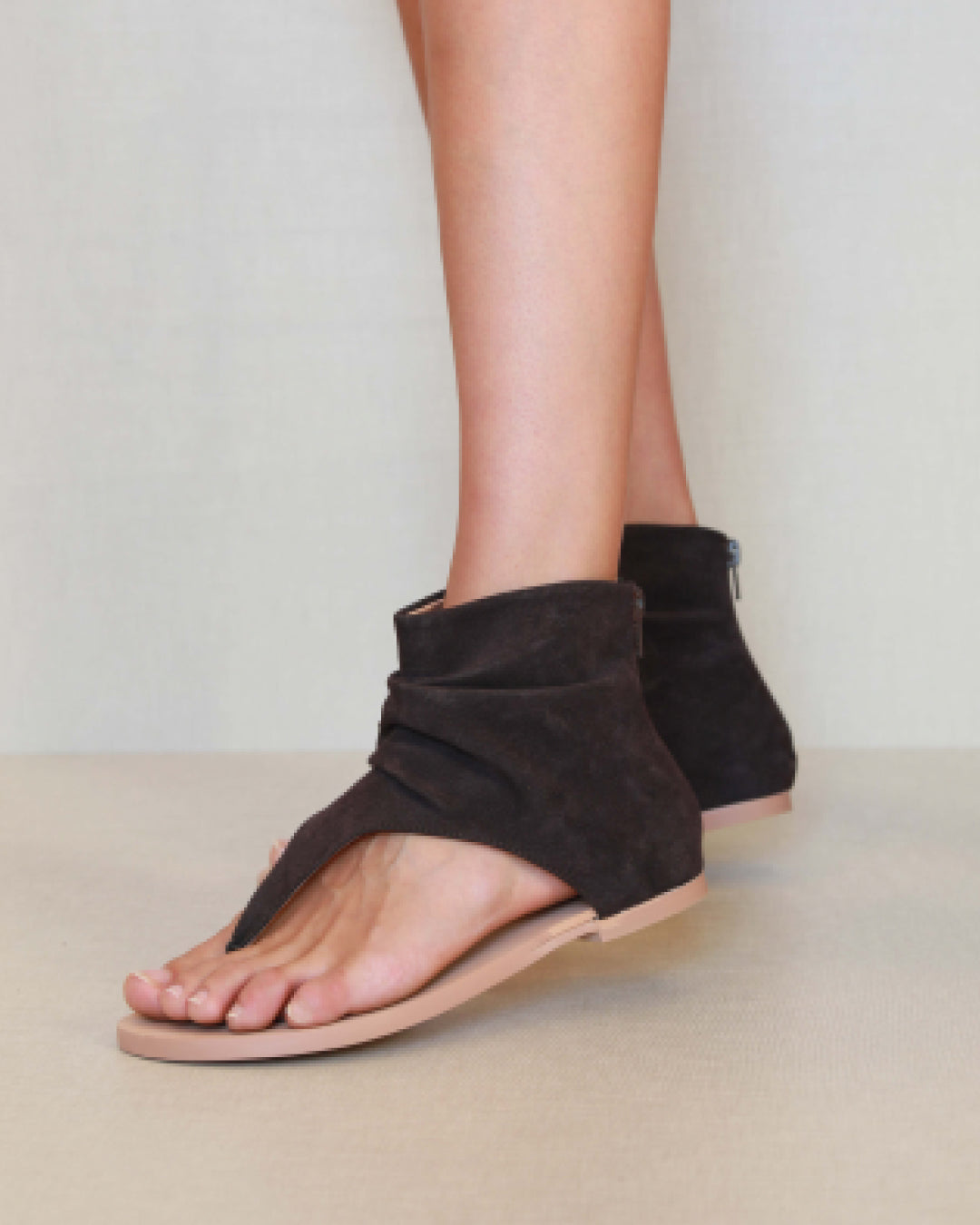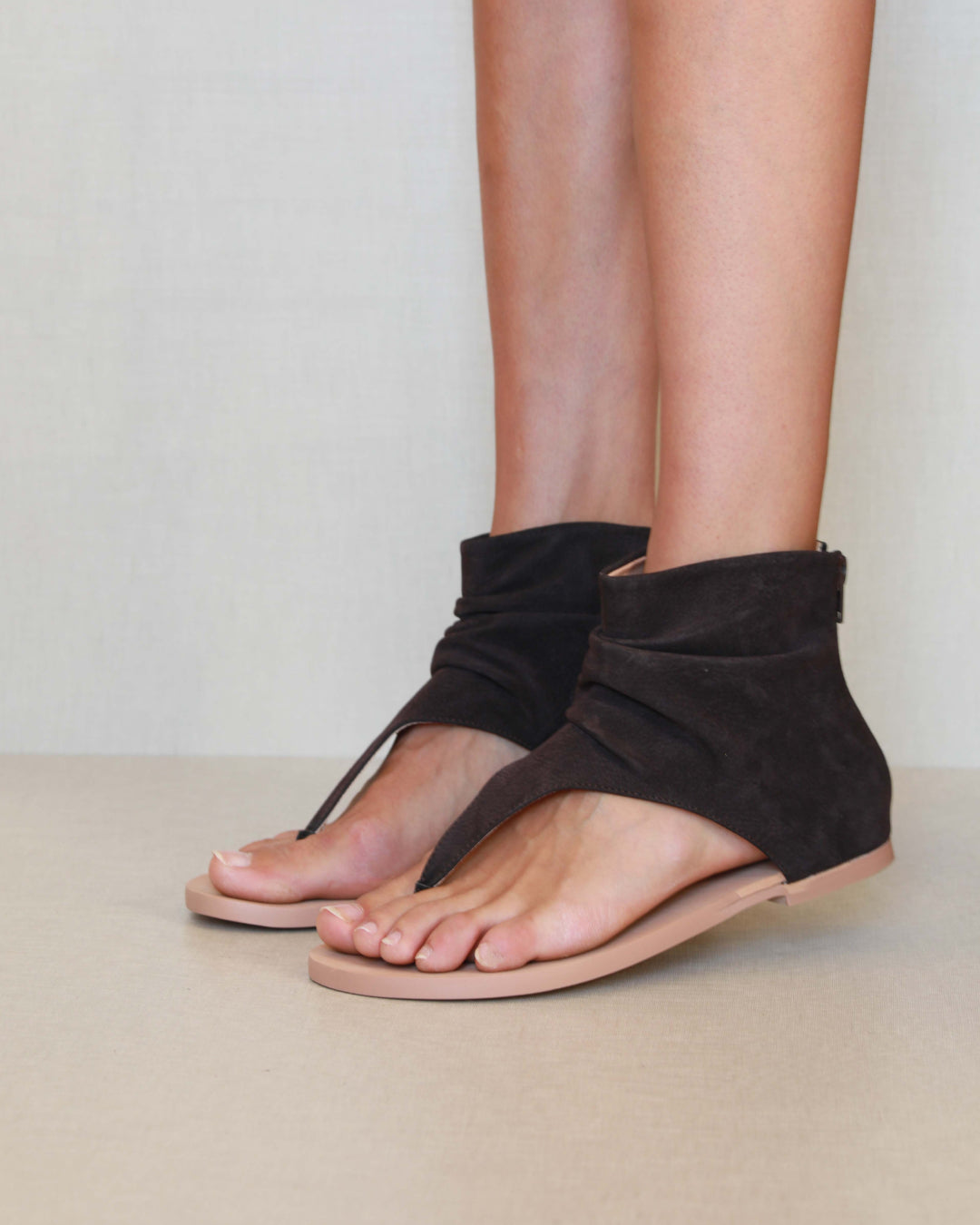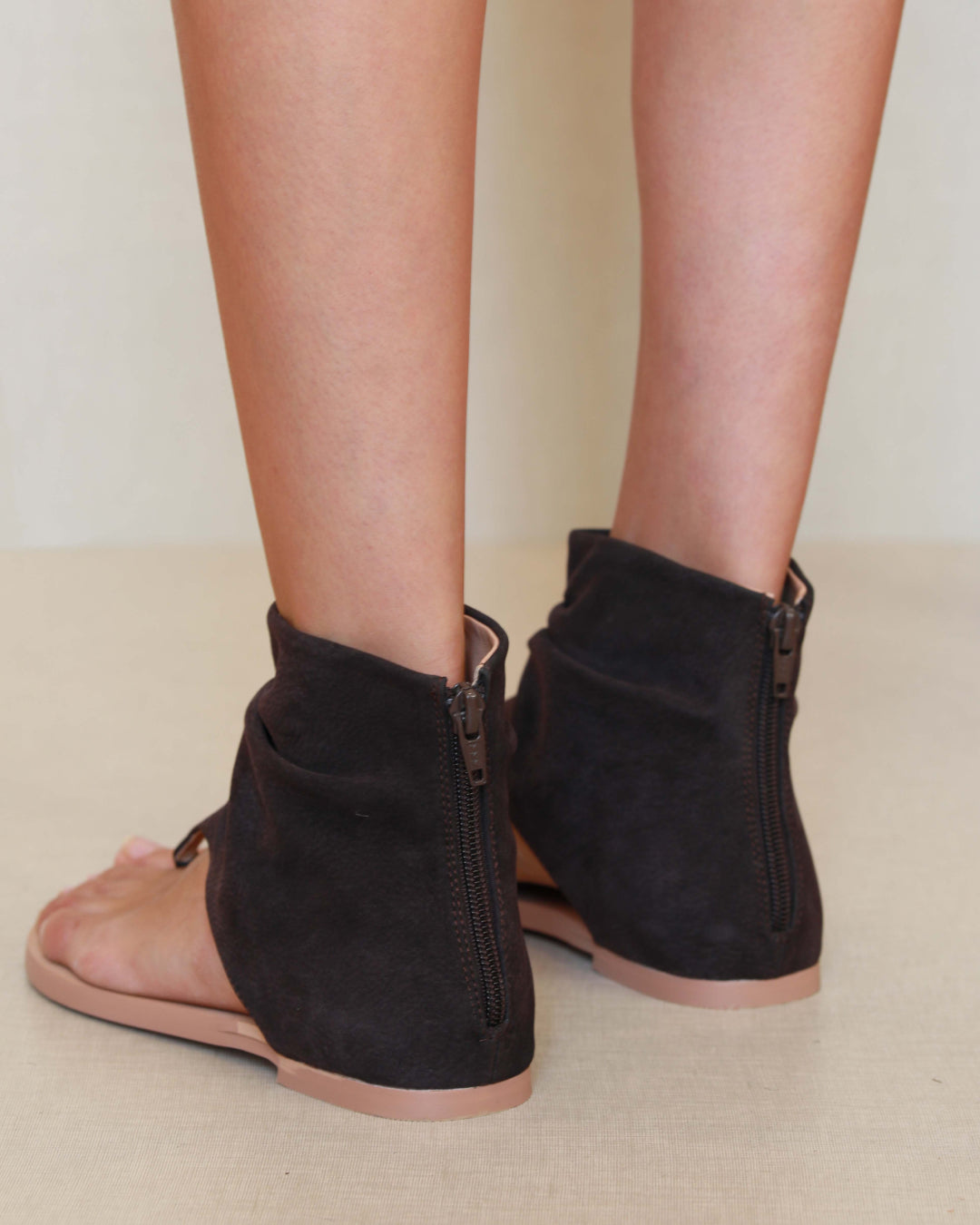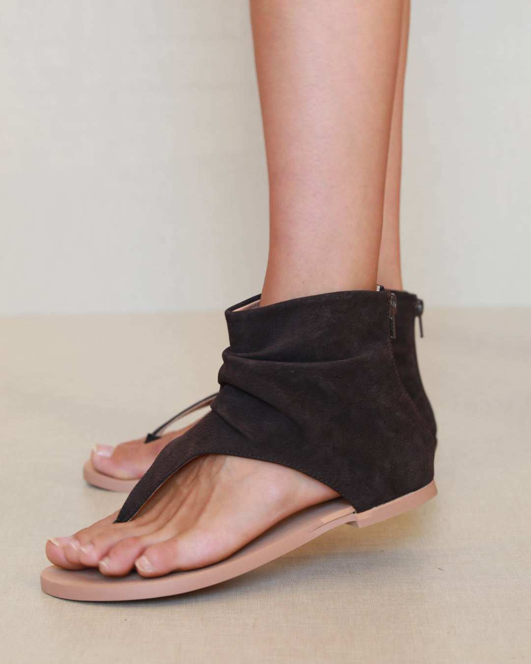 Sandale en cuir vegan violet. Fermeture éclair à l'arrière pour la fermeture.