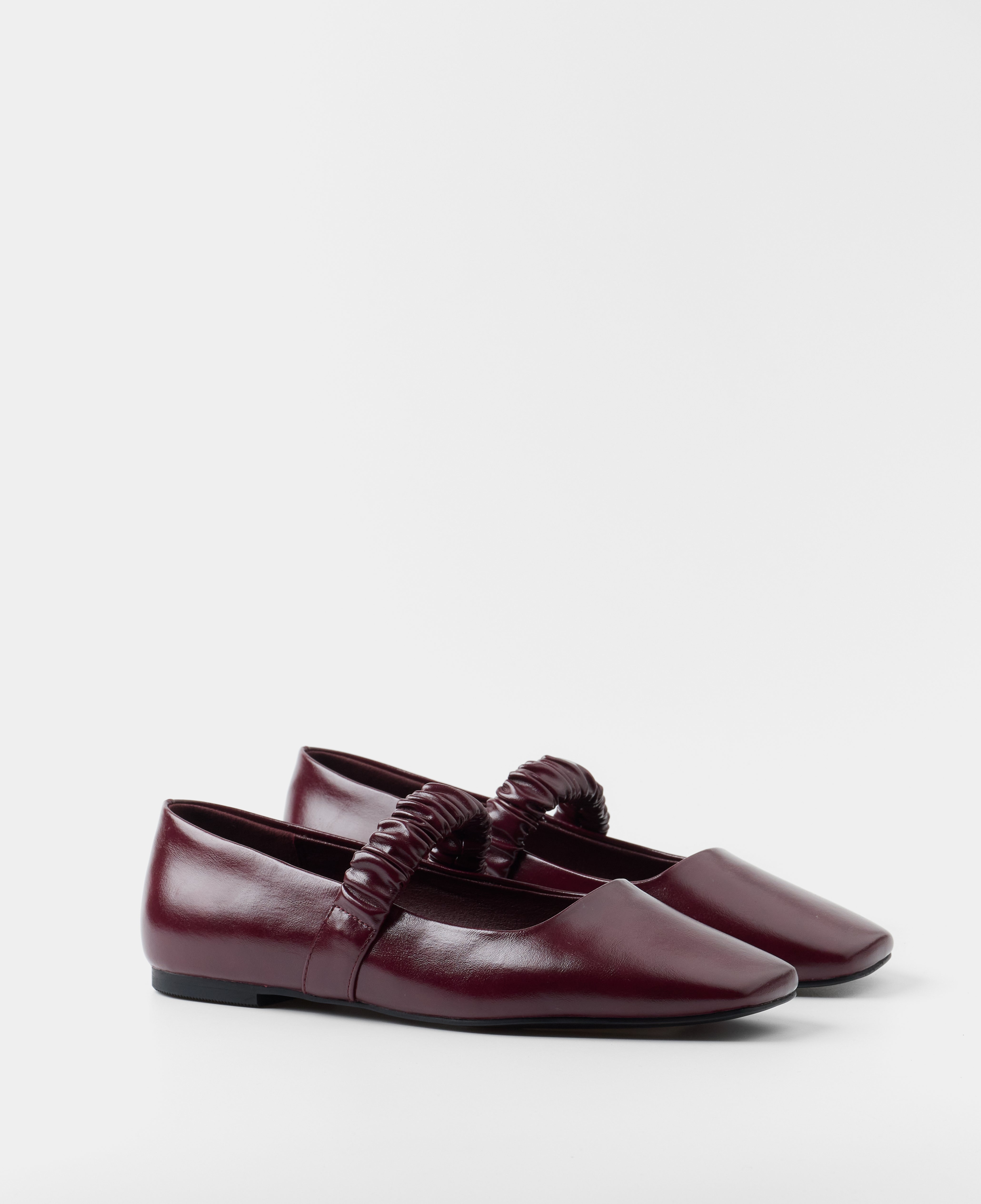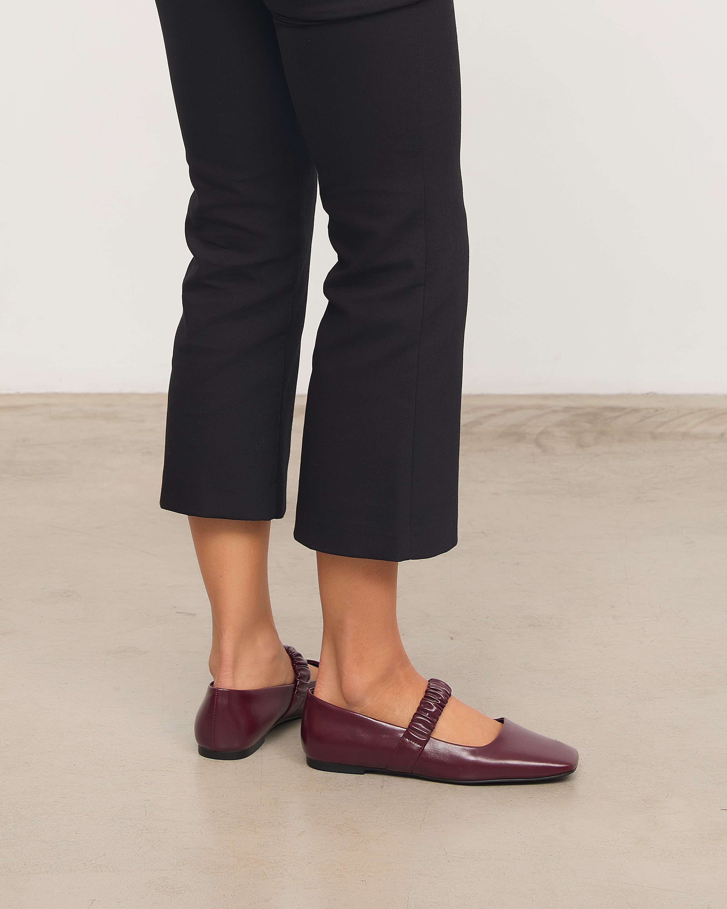 Zapato plano cerrado con puntera cuadrada en color burdeos. Ajuste con elástico.