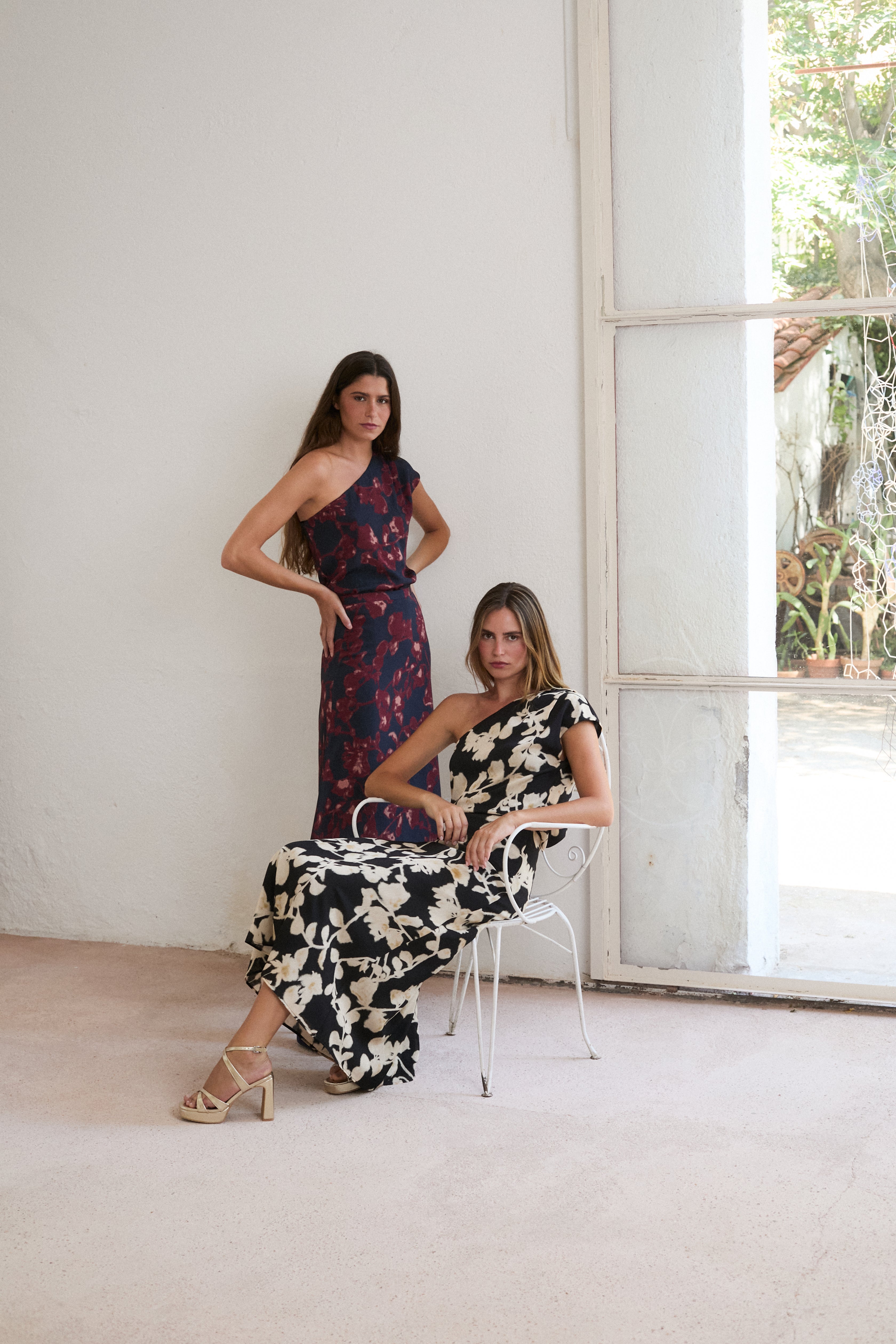Falda midi fluida con corte evasé. Tiro medio con cremallera lateral. Print de motivos florales en tonos burdeos y azul marino. Forro interior combinado.